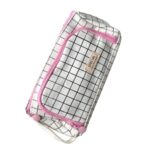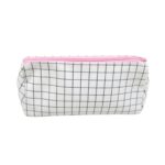 Aesthetic Large Capacity Checkered Pencil Case – Multi-Compartment Stationery Organizer with Side-Opening Flap, Elastic Pen Loops, and Carrying Handle (Pink Grid)