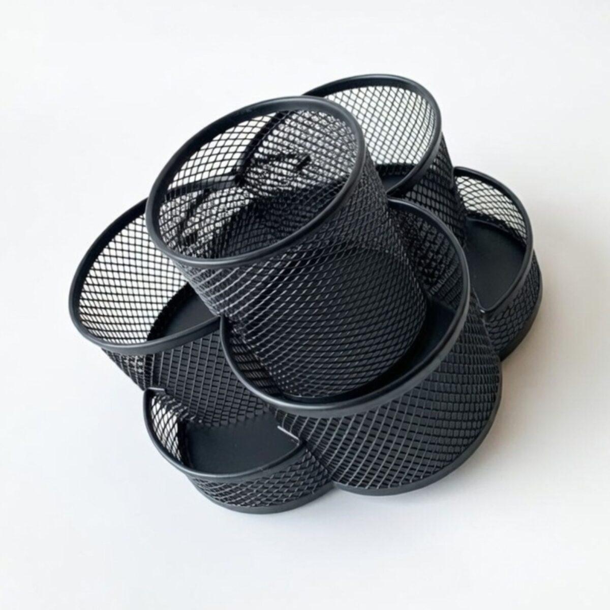 The unique clover-style layout provides a dedicated space for every item. Use the deep center compartment for taller items like pens, markers, scissors, and letter openers. The six surrounding shallow compartments are perfect for smaller desktop essentials such as paper clips, binder clips, thumb tacks, and sharpeners.