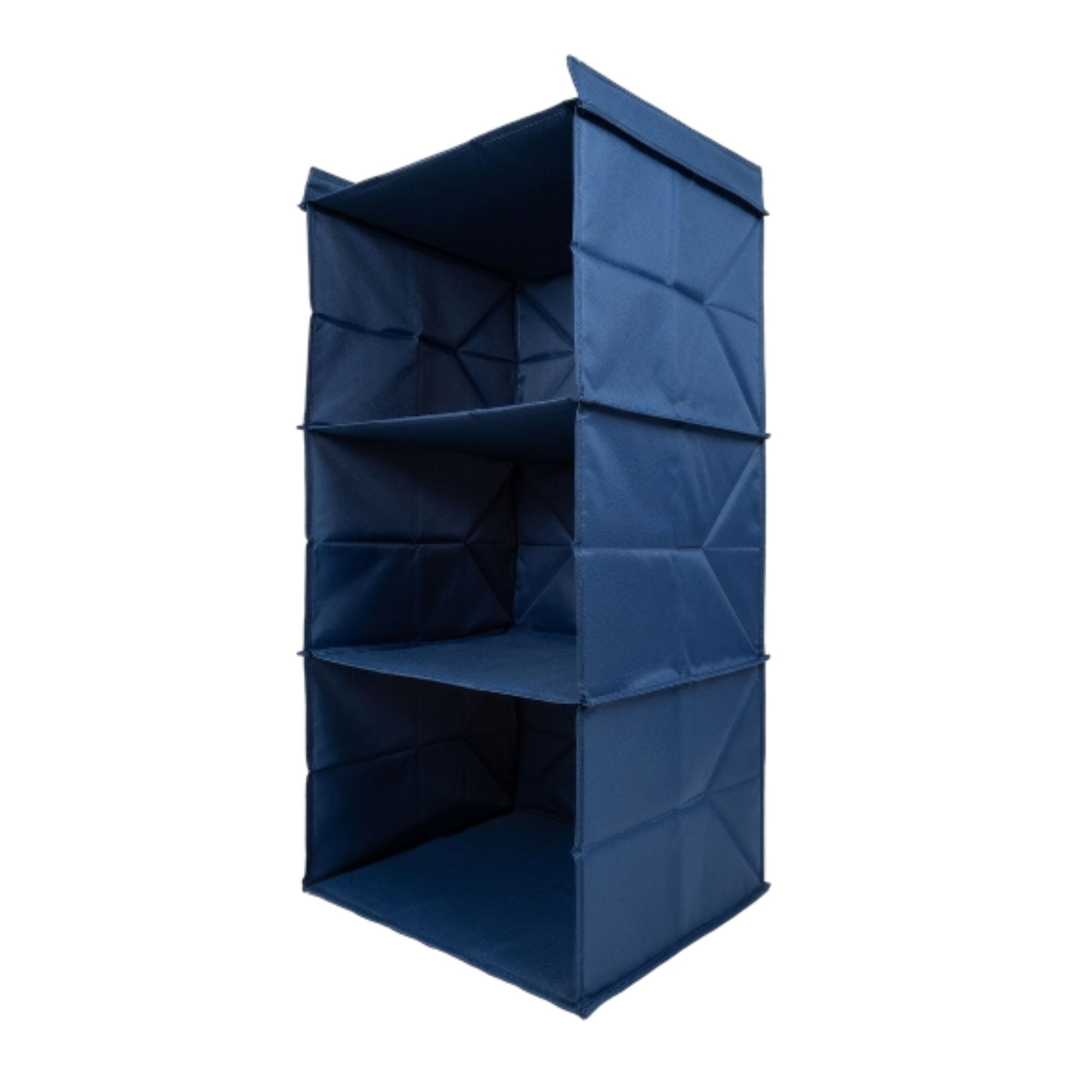 Transform your cluttered closet into a streamlined storage space with our Blue 3-Shelf Hanging Closet Organizer. Designed for efficiency and ease of use, this vertical shelving unit provides instant extra storage without the need for tools or hardware.