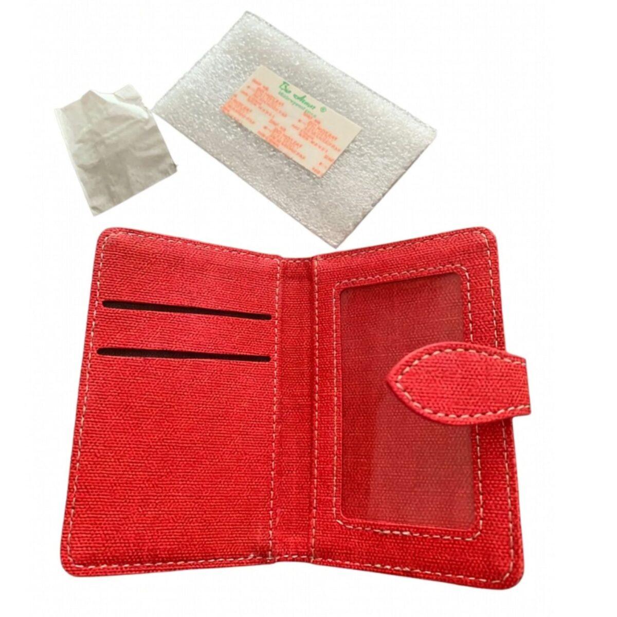 Minimalist Fabric Bi-fold Card Holder – Slim Textile Wallet with Transparent ID Window and Secure Snap Closure for Credit Cards & IDs