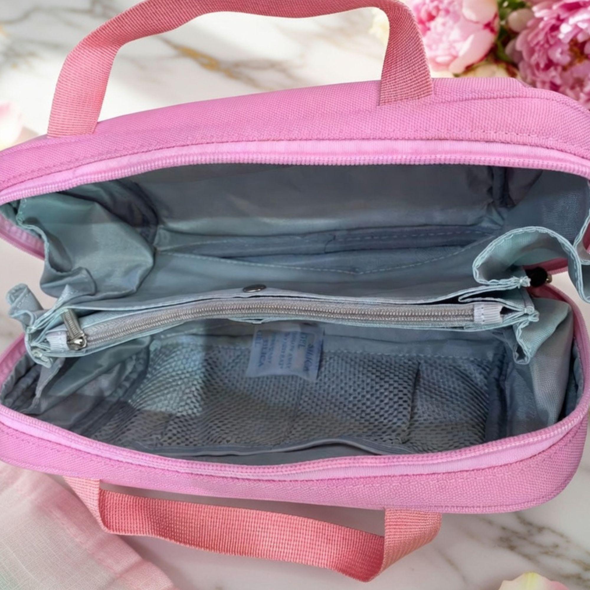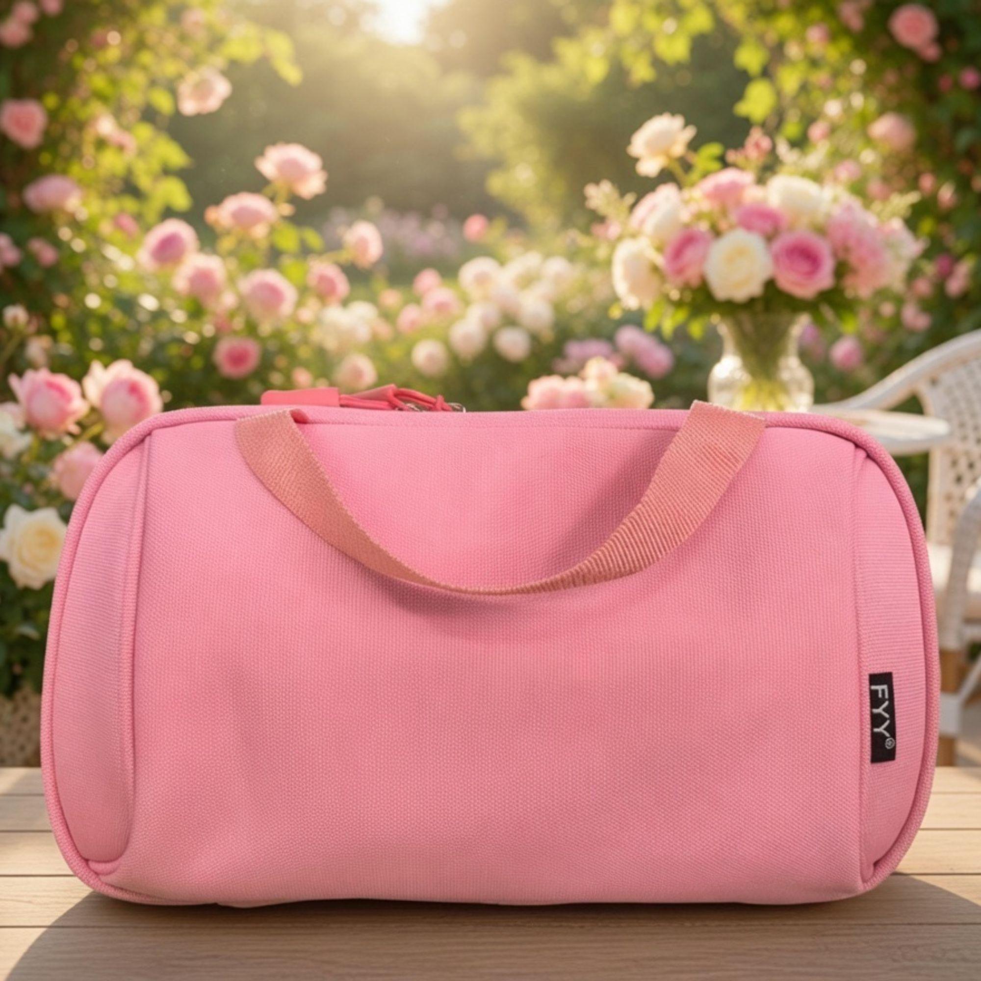 Elevate your organization with our Multi-Compartment Portable Travel Organizer. Specifically designed for those who value efficiency without sacrificing style, this bag offers a sophisticated way to manage your essentials. The exterior is crafted from high-quality, water-resistant woven fabric in a beautiful soft pink hue, built to withstand the rigors of travel while keeping your items protected.