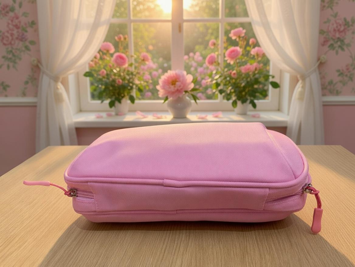 The standout feature of this organizer is its thoughtful interior layout. The bag opens 180 degrees to reveal a spacious main compartment divided by a secure center zippered pocket—ideal for keeping small jewelry or medication safe. Side mesh pockets provide visibility for your daily skincare bottles, while elasticized side walls hold brushes or cables upright.