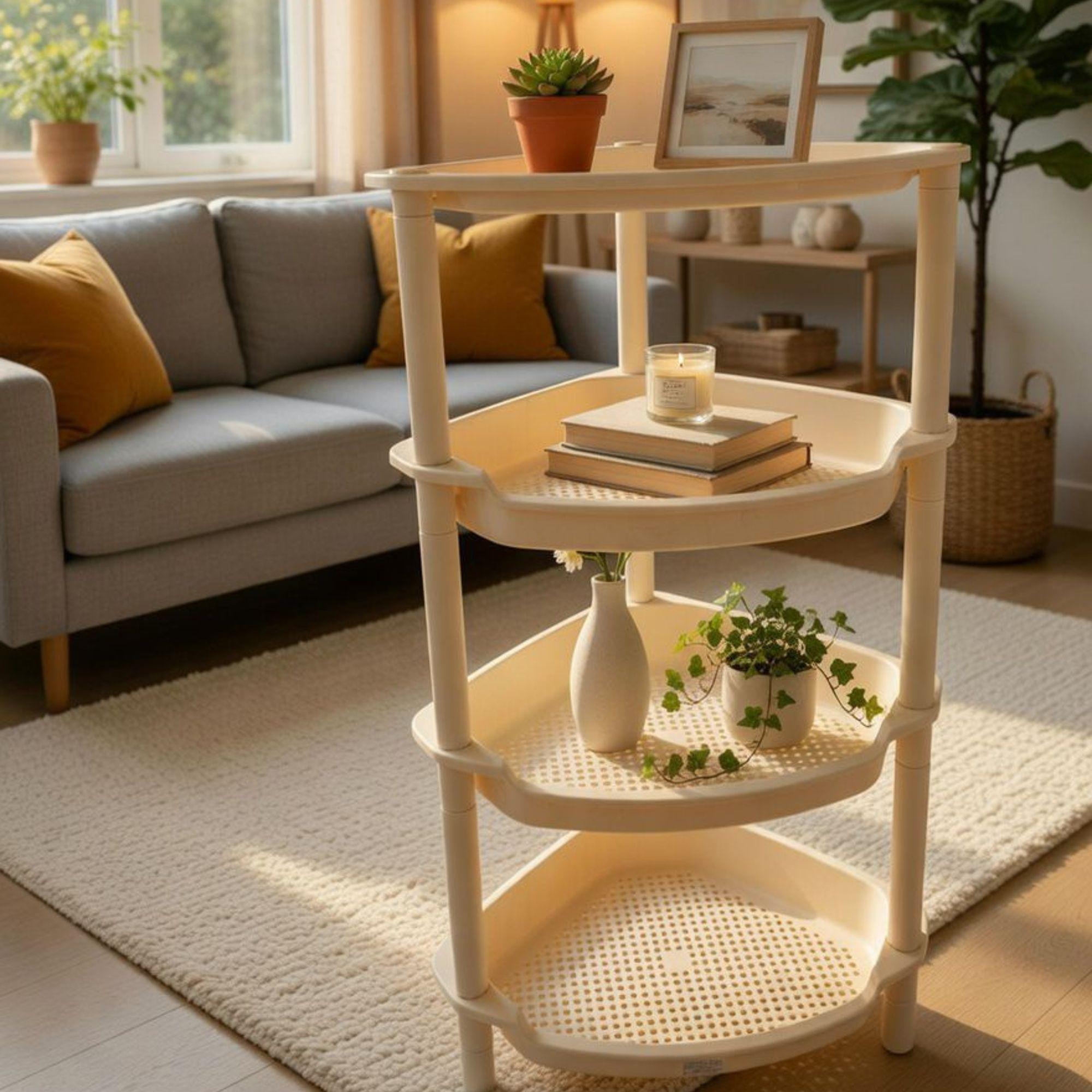 Maximize your home’s storage potential with our Multipurpose 4-Tier Corner Shelving Unit. This versatile organizer is designed for modern living, providing a clean and efficient way to declutter any room. Its unique triangular footprint makes it a perfect fit for corners in the living room, bathroom, kitchen, laundry room, or office.