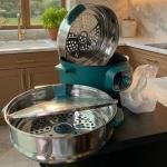 3. Premium Non-Stick & Stainless Steel The base features a high-durability, PFOA-free non-stick coating for effortless food release and quick cleanup. The steaming tiers are constructed from food-grade stainless steel to ensure long-lasting durability and superior hygiene.