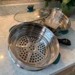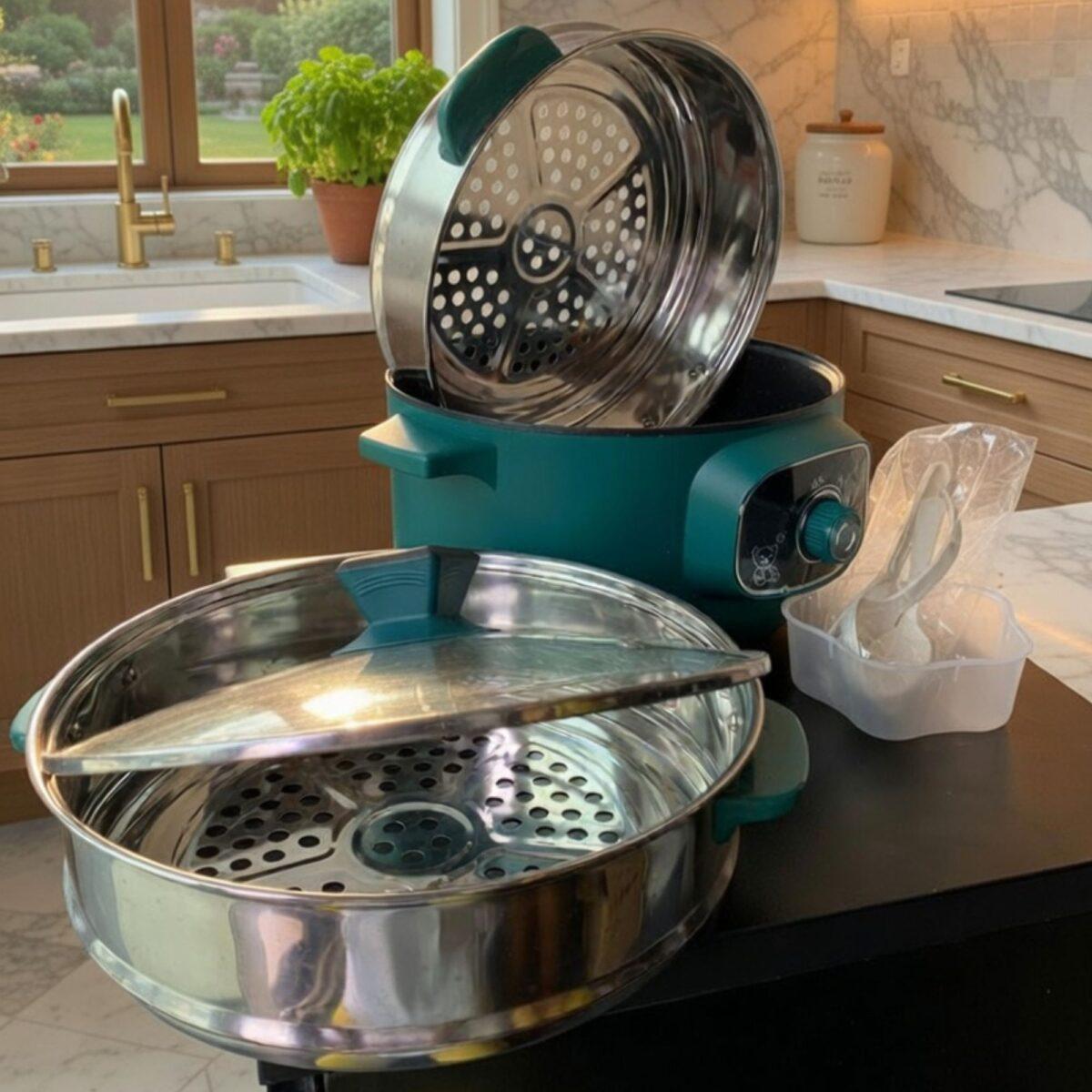 1. Expandable Triple-Layer Design Customize your cooking based on your needs. Use the non-stick base alone for soups and stir-fries, or stack the two 304 stainless steel steamer tiers to prepare dumplings, seafood, or fresh greens while your main dish simmers below.