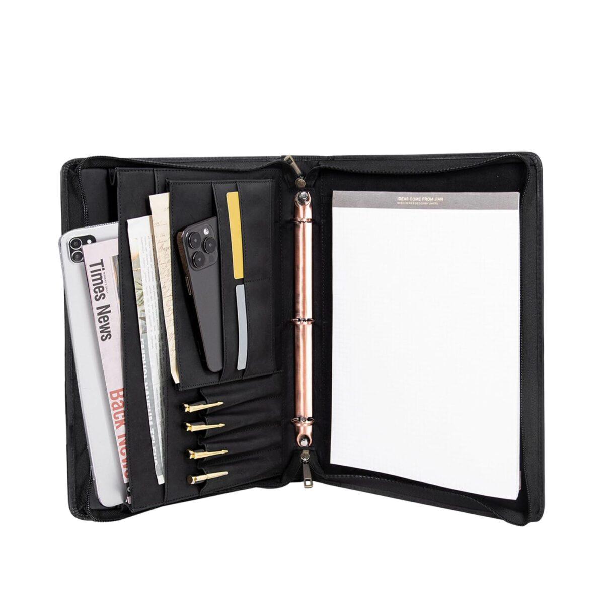 Our Professional Executive Zippered Portfolio is designed to streamline your workday and keep you organized during meetings, interviews, and travel. Combining sophisticated style with high-level utility, this padfolio replaces the need for multiple bags and folders by housing all your business essentials in one durable, handheld case.